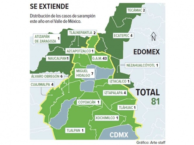 En una semana se registraron 32 nuevos casos de sarampión en el Valle de México para sumar 81 contagios durante este año.