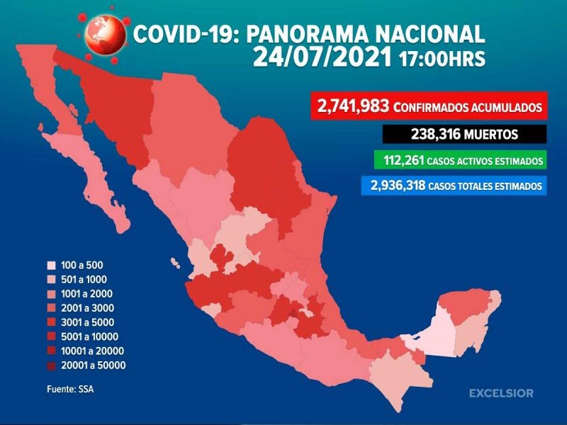 En su reporte diario, también publicado en su sitio web, se dio a conocer que las muertes relacionadas al covid-19 en la República llegaron a 238,316.