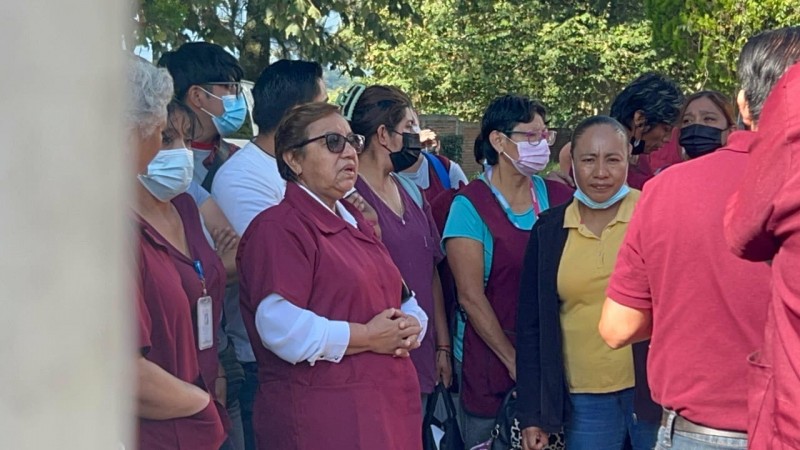 Los inconformes realizaron un paro de labores en el hospital y señalaron que la empresa subrogada acumula ya dos quincenas vencidas.