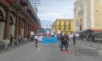2024-01-31 - Los quejosos salieron de las oficinas sindicales sobre la avenida Orizaba y caminaron hacia Palacio de Gobierno, donde bloquearon durante unos minutos la calle Juan de la Luz Enríquez.